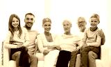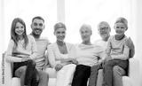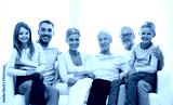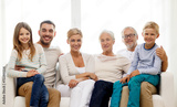happy family sitting on couch at home