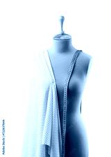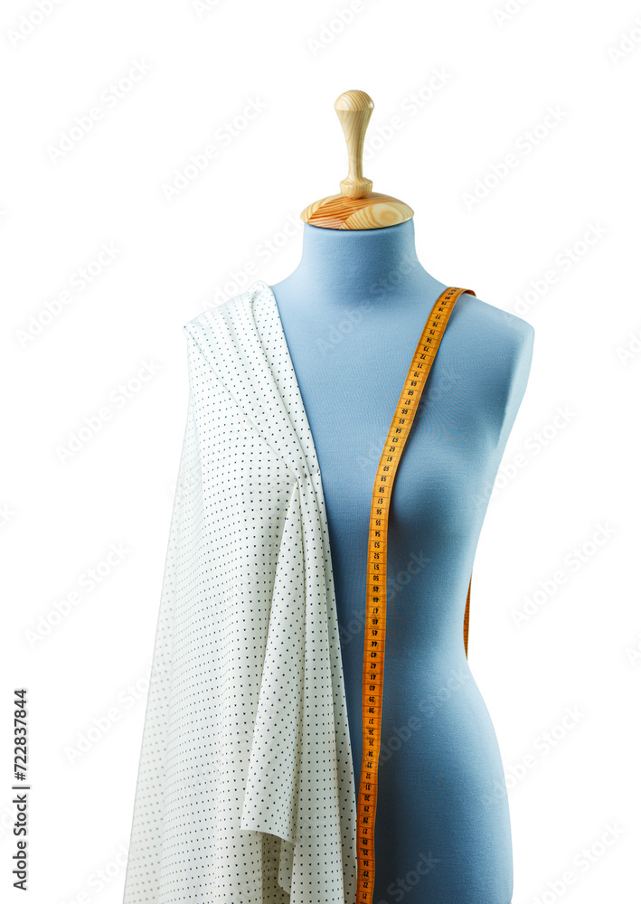 Blue tailor dummy mannequin with measuring tape. Transparent PNG
