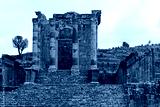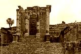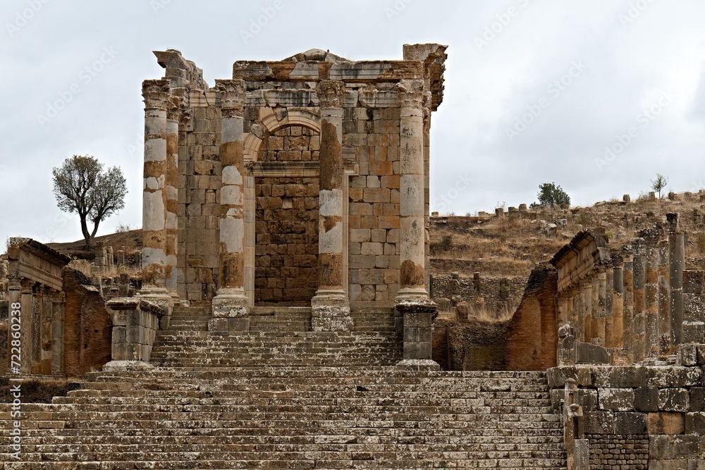 View of the ruins of the Roman city of Djemila. Temple of Gens Septimius. The city was inhabited from 1.-6. century AD. Today it is on the UNESCO World Heritage List. Algeria. Africa.