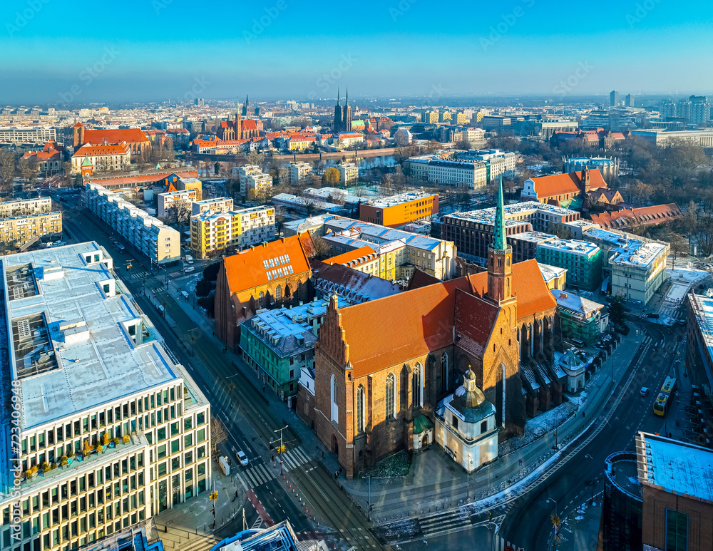 Aerial view of Wroclaw in winter, Poland
