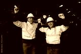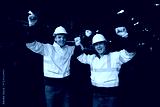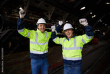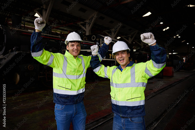 engineers or workers feeling happy after success work and project at construction train station