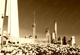 Skyline und Blumen