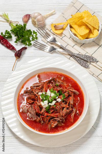 birria de res, mexican beef stew in pepper sauce