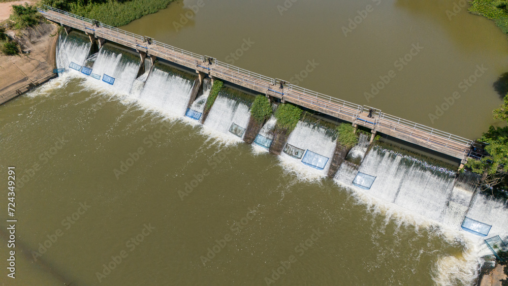 Aerial view of small spillway in Pa Daet district in Chiang Rai province of Thailand.