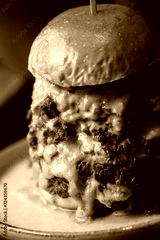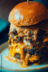 Close up image of juicy tasty beef hamburger. Fast food image of a burger with grilled meat.