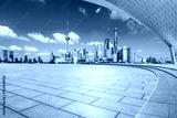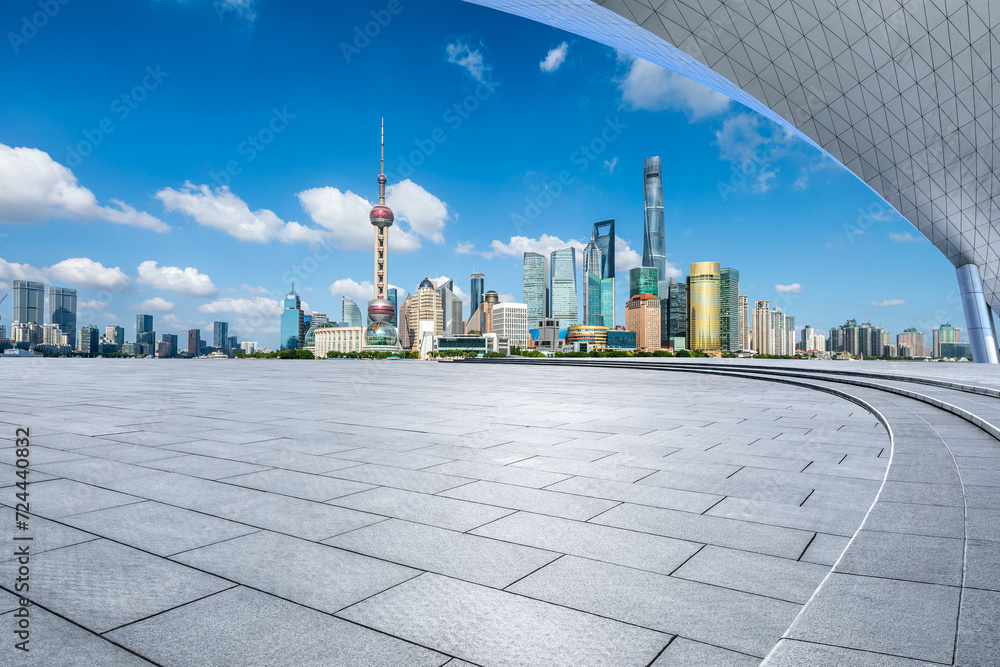Empty square floor and city skyline with modern buildings scenery in Shanghai