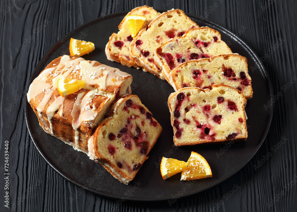 orange cranberry loaf with orange glaze, top view