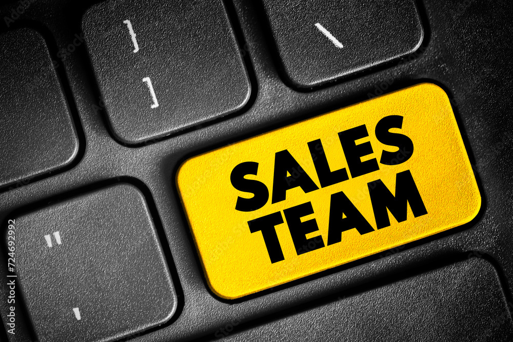 Sales Team - department responsible for meeting the sales goals of an organization, text concept button on keyboard