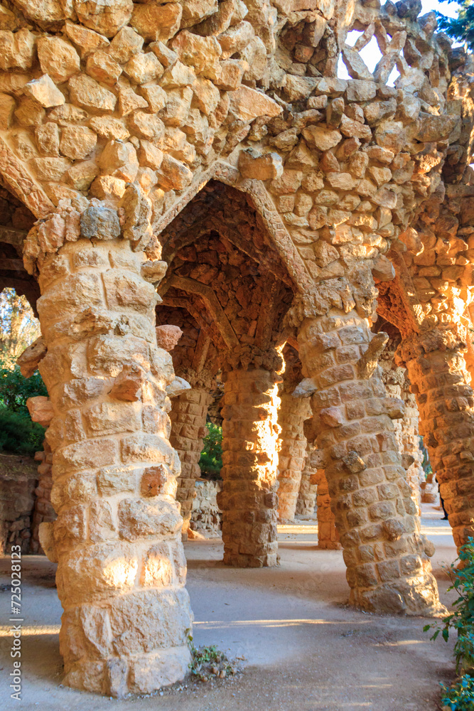 Columns designed by Antoni Gaudi in park Guell in Barcelona, Spain