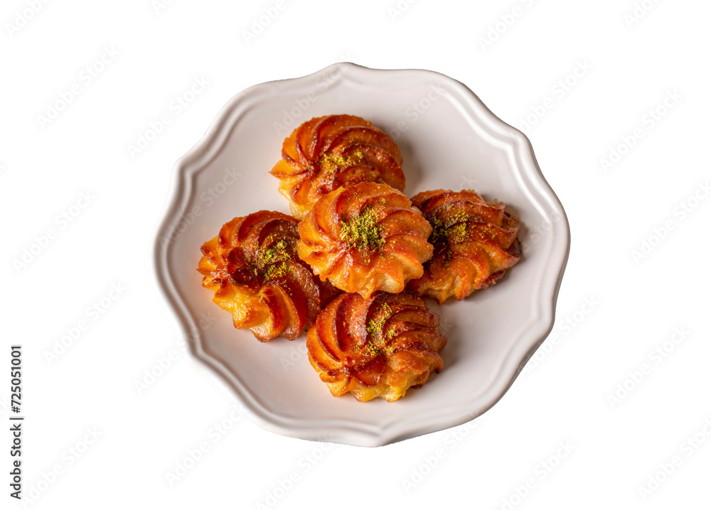 Turkish and Arabic Traditional Ramadan Dessert Lor Cheese Dessert with pistachio powder (Turkish name; Lor tatlisi)