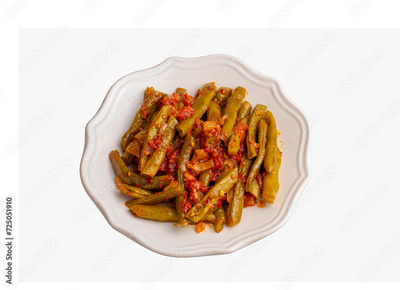 Traditional delicious Turkish food; Green beans with olive oil; Turkish name; Zeytinyagli taze fasulye