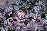 Purple silver inch leaf plant ( tradescantia zebrinahort ) in garden background