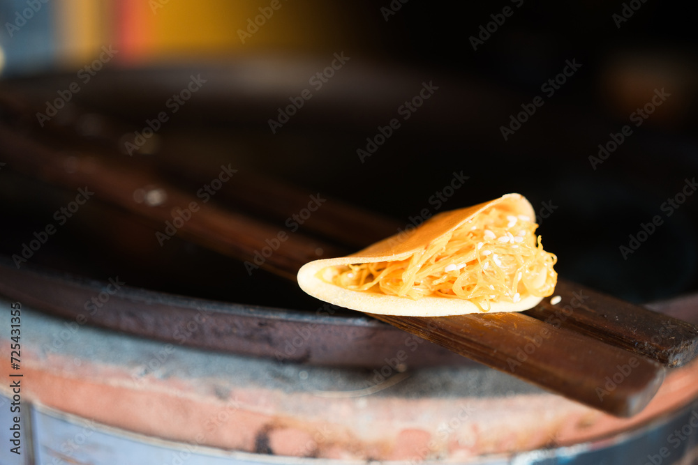 Khanom Bueng. Kind of sweet Thai desserts delicious, crispy, flavorful, and healthy, local Thai desserts