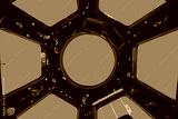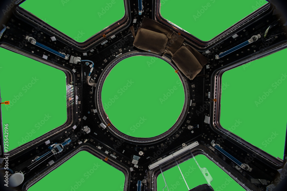 Porthole of space station isolated on green background. Elements of this image furnished by NASA.