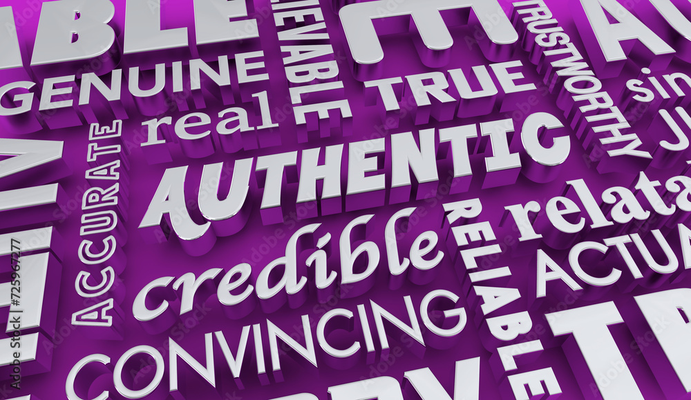 Authentic Sincere Genuine True Real Official Authenticy Words 3d Illustration