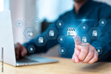 Franchise business e-commerce online e-marketplace or digital marketing branch expansion for growth or use technology to analyze product consumer data website management plan for sale service concept.