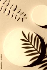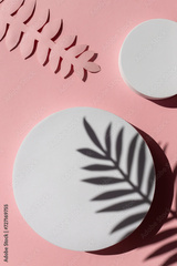 Modern abstract composition with round geometric shapes on the pink background. Copy space