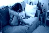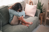 sad, depression, unhappy, depressed, lonely, problem, upset, alone, sofa, bad. depressed young woman sitting on couch in home, frustrated confused female feels unhappy problem in personal life.