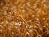 Sunlight highlighting the texture of ripe wheat ears.