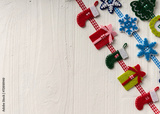 Christmas decoration on a background of white painted rustic boa