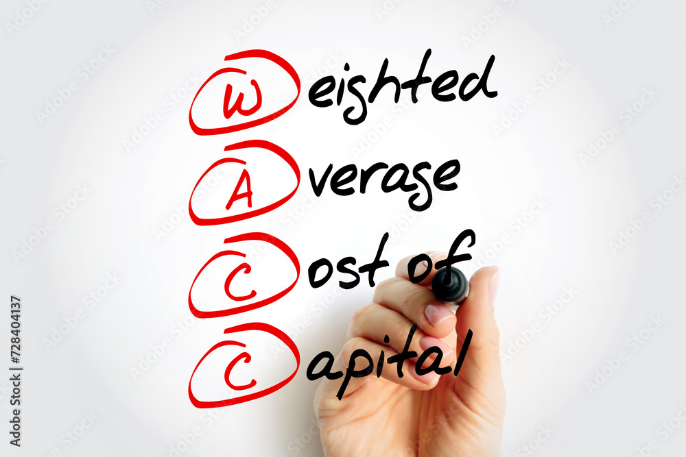 WACC Weighted Average Cost of Capital - rate that a company is expected to pay on average to all its security holders to finance its assets, acronym text with marker