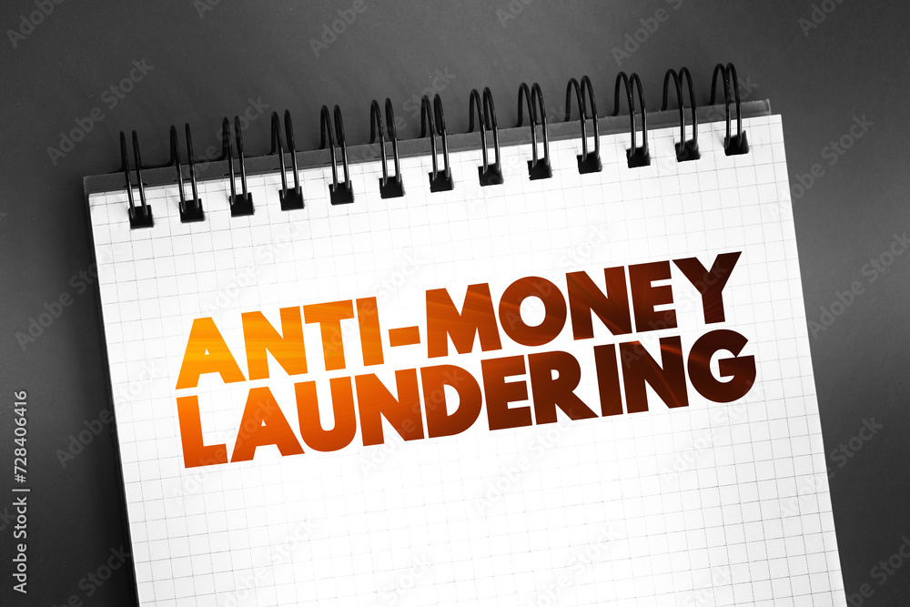 Anti Money Laundering text on notepad, business concept background