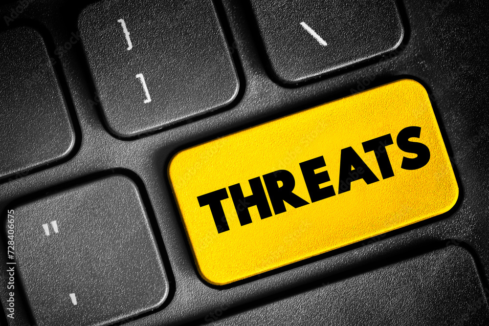 Threats text button on keyboard, concept background