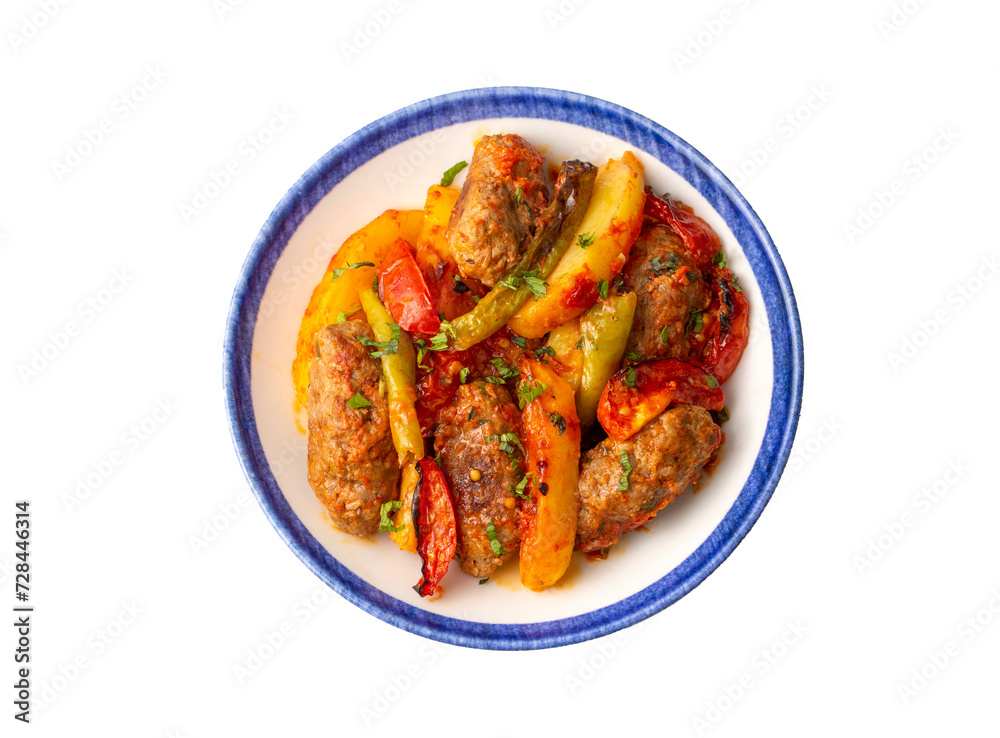 Traditional Homemade Turkish Food Kofte - Kofta with Tomato Sauce and Potatoes. (Turkish name; Izmir kofte)
