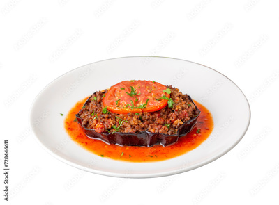 Traditional, delicious Turkish food, eggplant dish. Turkish name; Patlican oturtma