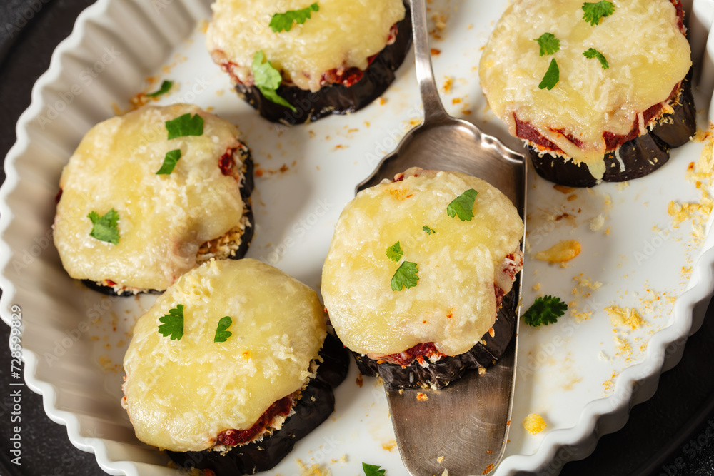 mini eggplant pizzas with tomato sauce and cheese