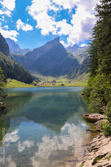 View of Lake Seealpsee near Appenzell in the Alpstein mountain range, Ebenalp, Switzerland