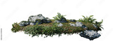 round surface patch covered with flowers, green leaf rock fern or dry grass isolated on white background. Realistic natural element for design. Bright 3d illustration.