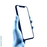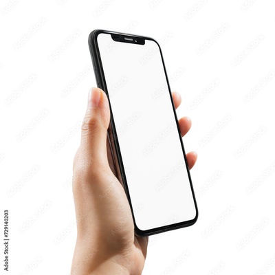 Hand holding smartphone with blank screen, mockup for application on mobile, modern design.
