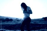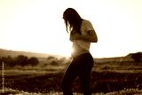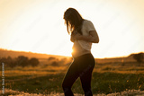 A pregnant woman looks at the sun reflecting on her belly against the light, waiting for the birth of the baby and her motherhood. Concept of giving birth pregnant and waiting for natural childbirth