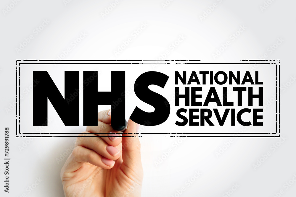 NHS National Health Service - comprehensive public-health service under government administration, acronym text concept stamp