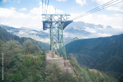 Muong Hoa Valley vast place interconnected across various tribal communities in Sapa from aerial lift pylon cable car pillar steel framework hauled gondola lift ropeway above the ground