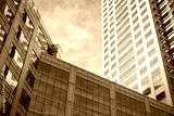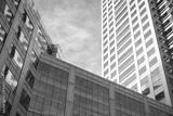 Glass business office building in a modern city. Financial center building. Exterior view of modern building. Skyscraper architecture. Corporate office building downtown. Corporate Headquarters.