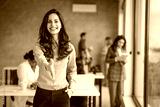 Happy office employee giving hand for shaking . Arm of business woman offering handshake. Professional welcoming colleague or new partner. HR manager hiring greeting at job interview. Close up shot