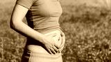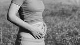 Belly of a pregnant woman in a field of flowers in spring in the first trimester of pregnancy. Portrait of pregnant woman's belly surrounded by nature in the first trimester of pregnancy. Real image