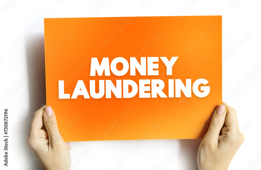 Money Laundering is the process of concealing the origin of money, obtained from illicit activities, text concept on card