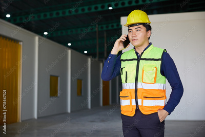 worker talking on smartphone in the factory