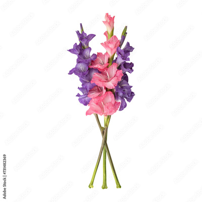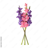 Pink purple gladiolus flower stems isolated on transparent background