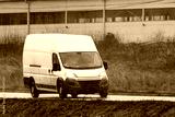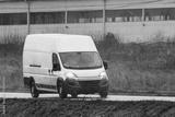 delivery van. A mockup of a white commercial vehicle isolated on the road. Perfect for your business and shipping needs.