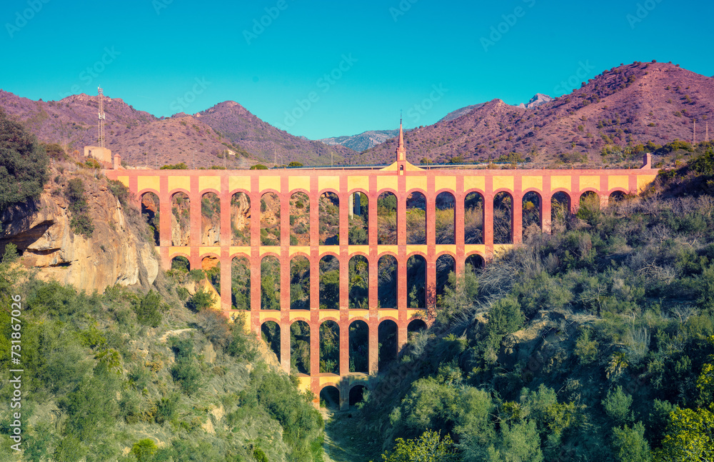 View of Aqueduct Eagle (El Acueducto del Aguila) in Nerja, Malaga, Spain