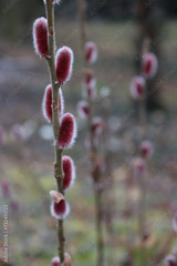 Japanese Willow with pink flowers Salix gracilistyla 'Mt. Aso' in bloom on springtime
