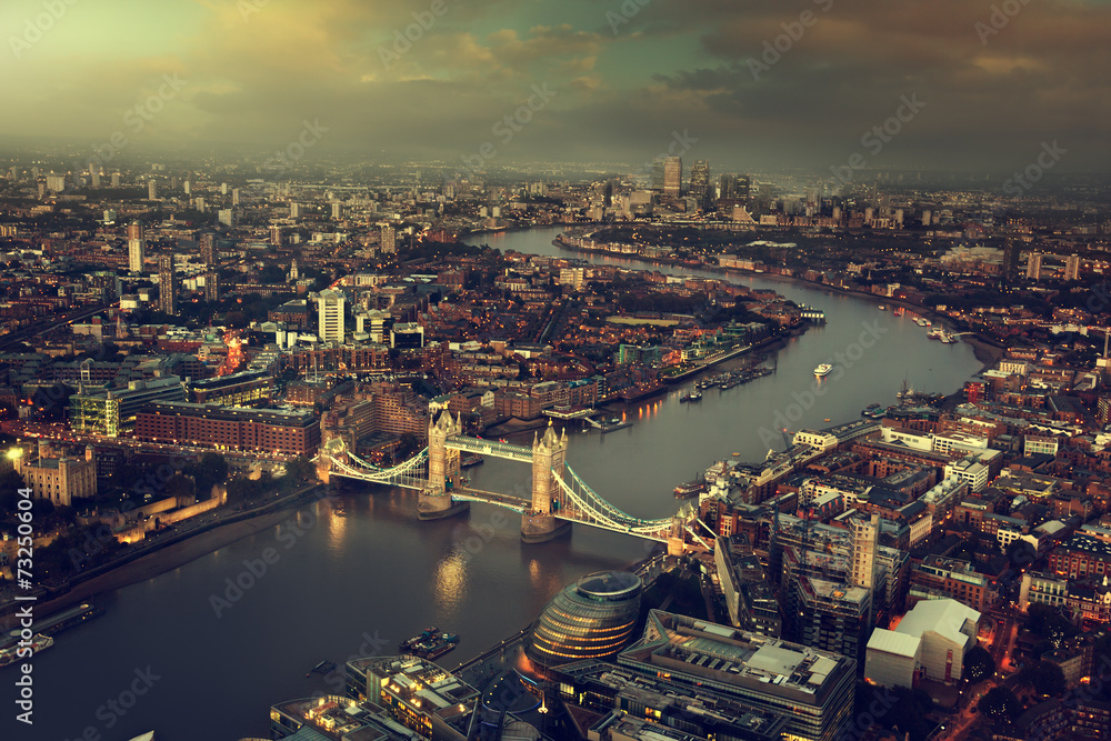 London aerial view with Tower Bridge, UK