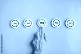 approval, approved, check, checkmark, choice, choose, confirm, correct, cross, decision. use finger to pointing for right or wrong marks on wooden dice, the concept of choice without people.