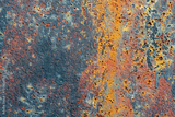 Rusty piece of old metal simple high quality grunge background texture, backdrop, blue red brown iron oxide rusted metal sheet structure macro extreme closeup oxidization, worn damaged corroded metal