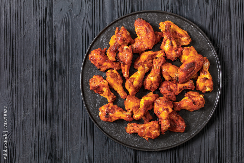 spicy crispy grilled chicken wings, top view
