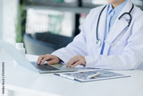Asian female doctor working with laptop and health personal data in modern clinic, Healthcare and medical concept.